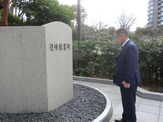 その後、千鳥ヶ淵戦没者墓苑を訪れ、墓苑に納められている御遺骨に献花・拝礼するとともに、隣接する戦後強制抑留・引揚死没者慰霊碑苑地において、戦後強制抑留・引揚死没者慰霊碑に拝礼しました。
