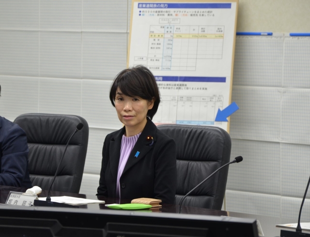 説明を受ける堀内総務副大臣