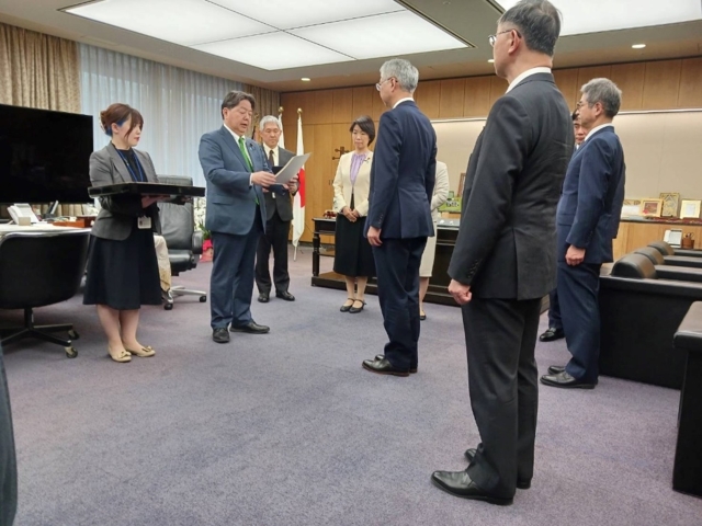 令和8年3月30日、林総務大臣は、日本郵政株式会社及び日本郵便株式会社の令和8事業年度事業計画について、日本郵政株式会社根岸社長及び日本郵便株式会社小池社長に認可書を交付するとともに、日本郵便株式会社の収支改善計画の作成・実施を含む要請を行いました。(堀内総務副大臣、向山総務大臣政務官同席)
