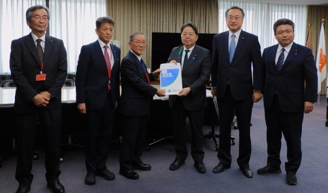 要望書を受け取る林総務大臣