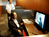 ライブラリー視聴ブースの説明を受ける西銘総務副大臣