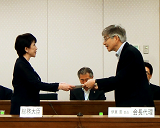 「一日子ども局長」の辞令を交付する高市総務大臣