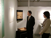 海外からの引揚げ関係の展示を視察する土屋総務副大臣