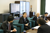 東日本大震災からの復興の現状について、亀山紘 石巻市長から説明を受ける松下総務副大臣