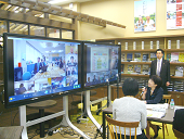 電子ボードを活用した説明を受ける森屋総務大臣政務官