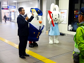 吉田雄人横須賀市長(中央左)ほかの出迎えを受ける輿水総務大臣政務官