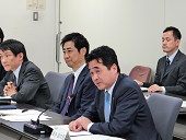 構成員の意見交換を聞く坂井総務副大臣