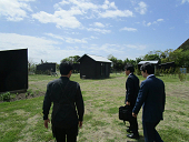 校庭跡を視察する小倉総務大臣政務官