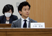 構成員の意見交換を聞く小林総務大臣政務官