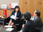 川口市役所鳩ヶ谷庁舎において保健所職員と意見交換を行う小倉総務大臣政務官