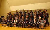 受章者代表から謝辞を受ける石田総務大臣(写真上)お祝いの言葉を述べる古賀総務大臣政務官(写真下 左から3番目)