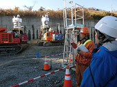 建機の遠隔制御について説明を受ける國重総務大臣政務官