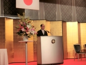 お祝いの言葉を述べる尾身総務副大臣