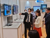 日英機械翻訳技術の説明を受ける国光総務大臣政務官