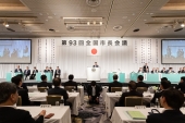 全国自治体病院協議会定時総会で祝辞を述べる尾身総務副大臣