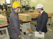 実大木材強度試験の説明を受ける長谷川総務大臣政務官
