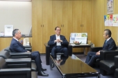 認可書交付式後、意見交換を行う国光総務大臣政務官