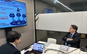 映像認識AIと大規模言語モデルを組み合わせたソリューションについて説明を受ける川崎総務大臣政務官
