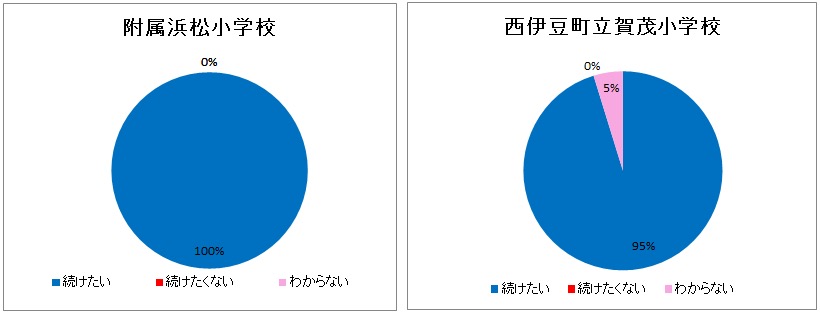 附属浜松小も賀茂小もほぼ9割の児童から、プログラミングも講座も楽しかったと回答を得ることができた。