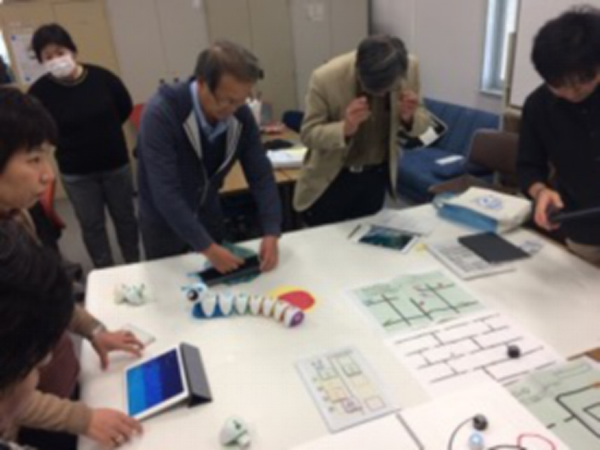 プログラミング教育の進め方の参考になった。研修に活かしていきたい。 実証校の富山市立芝園小学校は、知的障害、自閉症・情緒障害、肢体不自由、病弱、難聴の5つの障害に対応した特別支援学級を持つ県内唯一の学校である。富山市教育委員会も、そこでのプログラミング教育の実施に期待を持つと同時に、その成果を、広く富山市内の学校で共有したいとの思いで本実証事業が始まった。中間、最終の公開授業はもとより、折々の授業時に、富山市教育長、教育委員会指導主事、教育センター研修担当者が実際の授業を参観し、プログラミング教育に関する具体の教材や、その指導法を高く評価された。今後は、富山市でのプログラミング教育推進のための研修に活かしていきたいとの意見も聞かれ、本実証事業のカリキュラムや教材の開発を行った、富山大学、富山県教育工学研究会との連携が深まった。