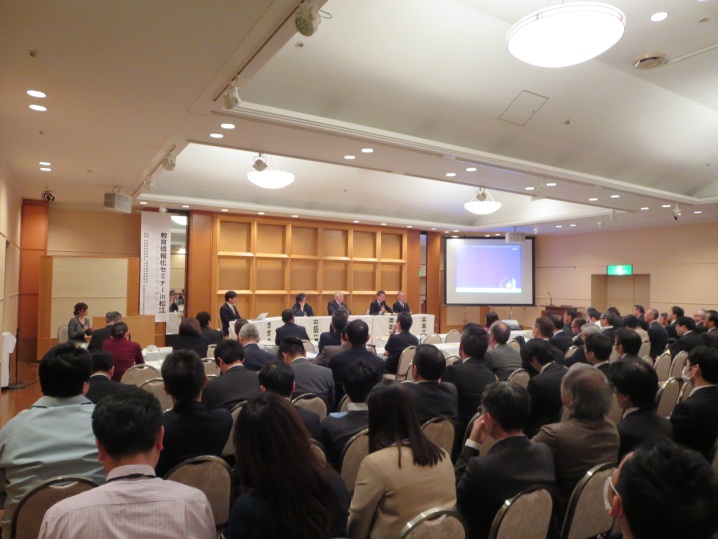 続いて、広島大学大学院教育学研究科技術・情報教育学講座 教授の渡辺 健次氏をコーディネーターに「教育現場にICTの整備を進める覚悟と展望」をテーマに、講師4名によるパネルディスカッションを行いました。意見交換の中で、多くの予算を投資して教育の情報化に取り組んだ各自治体の覚悟に関しては、教育で地域を活性化しようとする強い思いの発言が各講師から出されました。また、持続的に取り組むための方策として、「教職員が持続的にICTを使う技術を持ち続ける」、「ICTを使った教育の成果をどんどん発信していく」などの意見が出されました。
