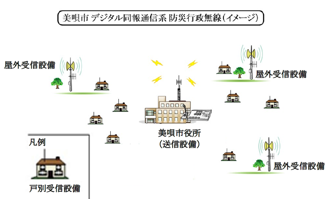 防災行政無線(同報系)は、市町村役場から屋外拡声子局(屋外受信設備)や戸別受信設備を無線で結び、地域住民に災害や行政情報などを伝達するための重要なインフラです。