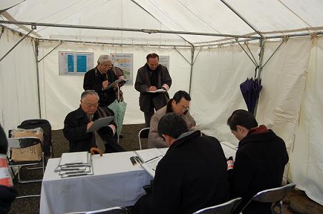 ワンセグ対応の携帯端末を使って、能楽美術館内の紹介や展示物(草薙を演ずる日本武尊の木彫)の説明を、日本語と中国語による映像と音声で体験していただきました。