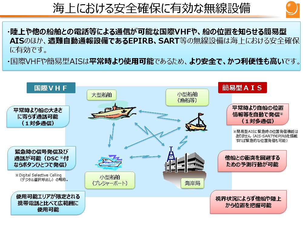 ※3 航行の安全に関する重要な通信を行う無線通信システムとして、遭難・安全通信、港務通信、電気通信業務、水先業務等において全世界的に使用されている。