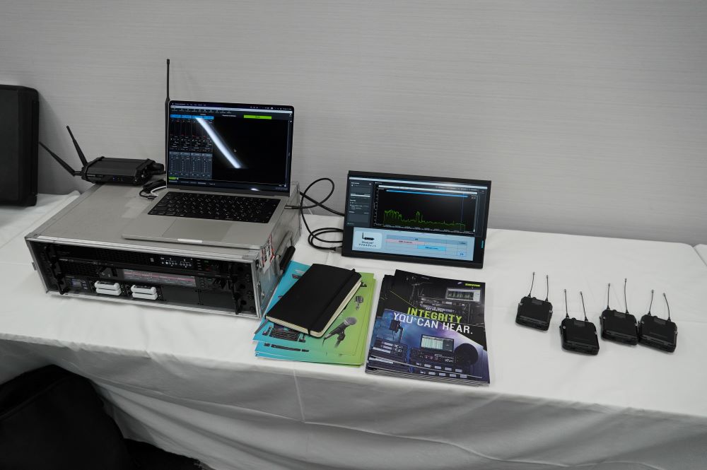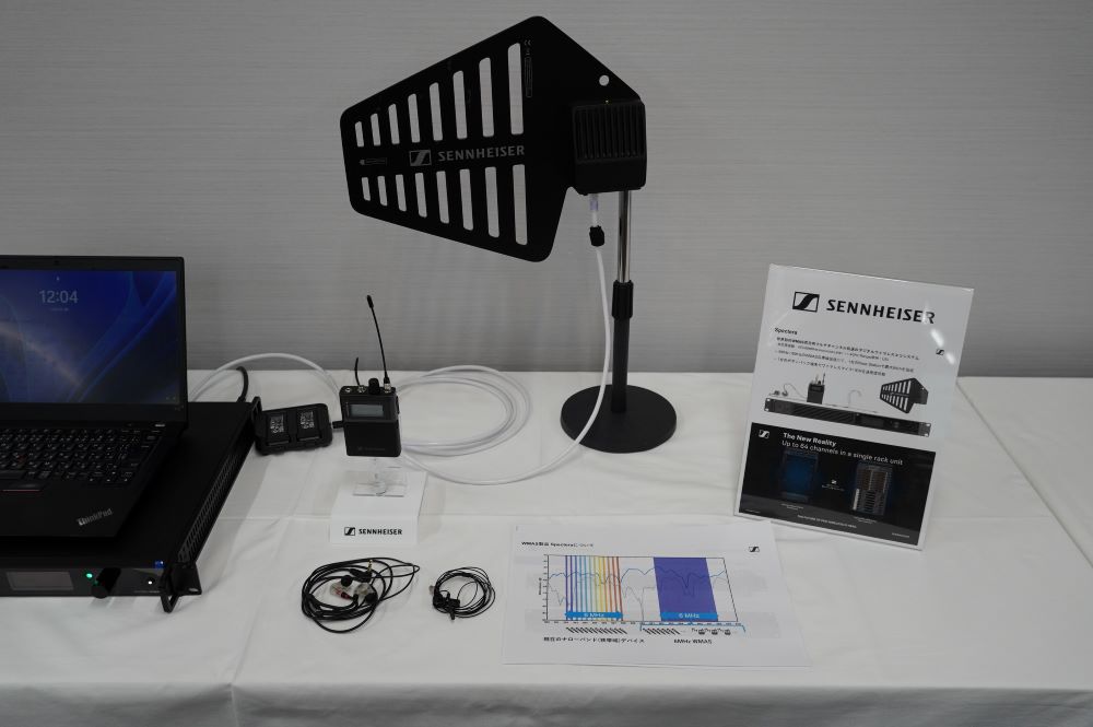 最後に、「大阪・関西万博における次世代ワイヤレスマイクの実証と活用」と題し、デジタル広域伝送技術を使用した新たな無線オーディオ伝送システム「WMAS」とその活用例について、前半にゼンハイザージャパン株式会社 プロオーディオ テクニカルアプリケーションエンジニア 藤井 宏幸 氏から、近年のワイヤレスマイクの需要増加の背景を踏まえ、特定ラジオマイク(A型)の重要性とWMASの概要についてご説明され、同社のWMAS投資製品「Spectra」の万博における運用事例が紹介されました。