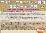 総務省沖縄総合通信事務所は、2月13日(金)沖縄サイバーセキュリティネットワークとの共催で「サイバーセキュリティ月間セミナー in 沖縄」をオンラインで開催、沖縄管内の企業や自治体の関係者134人が参加しました。 セミナーでは、沖縄管内のサイバー犯罪の現状と新たな脅威の傾向、総務省のサイバーセキュリティ政策の動向を紹介するとともに、実例を踏まえた地域企業・自治体のための実践的な対策を紹介しました。 |