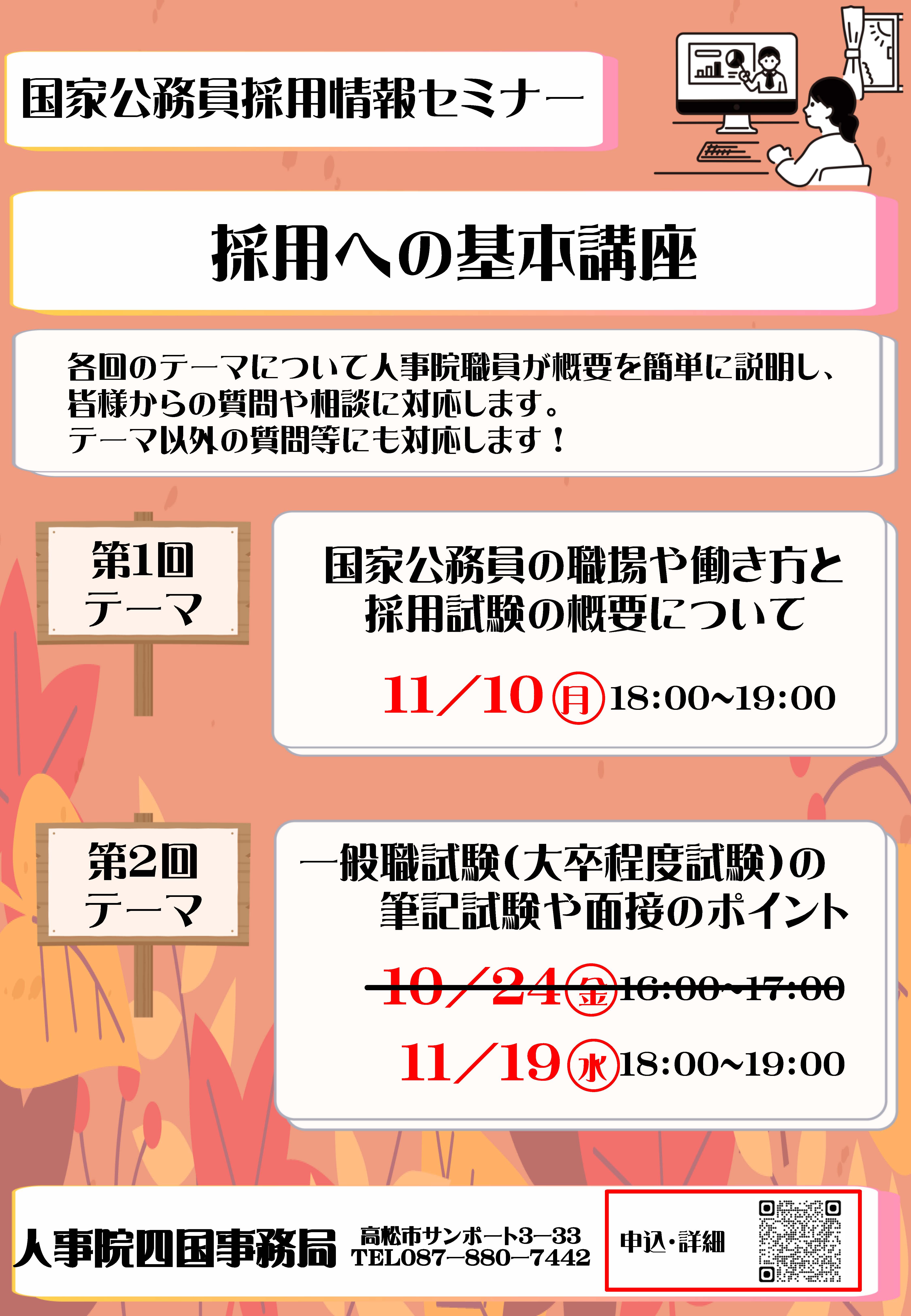 【人事院】「国家公務員採用情報セミナー(採用への基本講座(11月)」を開催します。