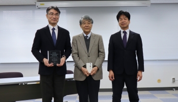 記念撮影:左から、田中 秀治 教授(東北大学)、門田 道雄 シニアリサーチフェロー(東北大学)、