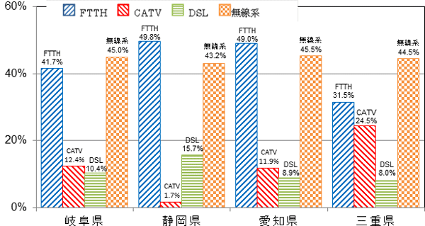 図4:東海管内のブロードバンドサービス別世帯普及率の状況