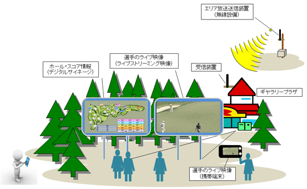 株式会社CBCテレビは、第57回中日クラウンズの期間中に、このエリア放送を用いて、携帯端末や大型ディスプレイに向けた選手のプレー映像やスコア情報の配信、また、Wi-Fiを活用した携帯端末向けデータ配信等を行い、ゴルフ観戦の多様な楽しみ方を提供する予定です。
