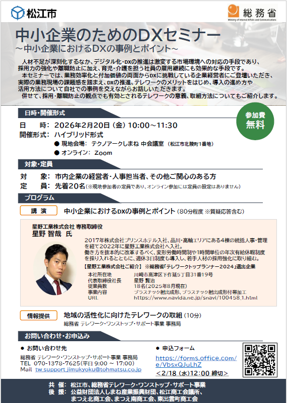 共催:松江市、総務省テレワーク・ワンストップ・サポート事業