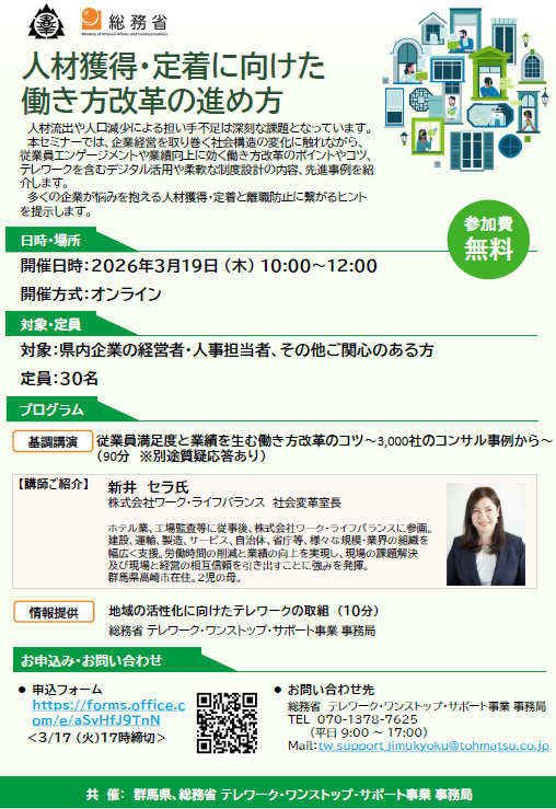 共催:群馬県、総務省テレワーク・ワンストップ・サポート事業事務局