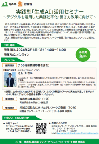 共催:青森県、総務省テレワーク・ワンストップ・サポート事業事務局