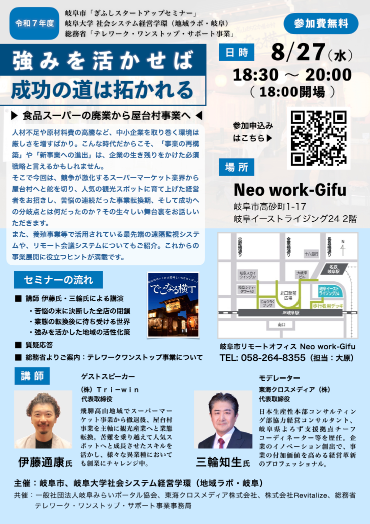 共催:一般社団法人岐阜みらいポータル協会、東海クロスメディア株式会社、 (株)Revitalize、総務省テレワーク・ワンストップサポート事業事務局