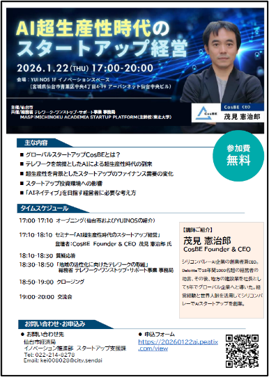 MASP:MICHINOKU ACADEMIA STARTUP PLATFORM(主幹校:東北大学)