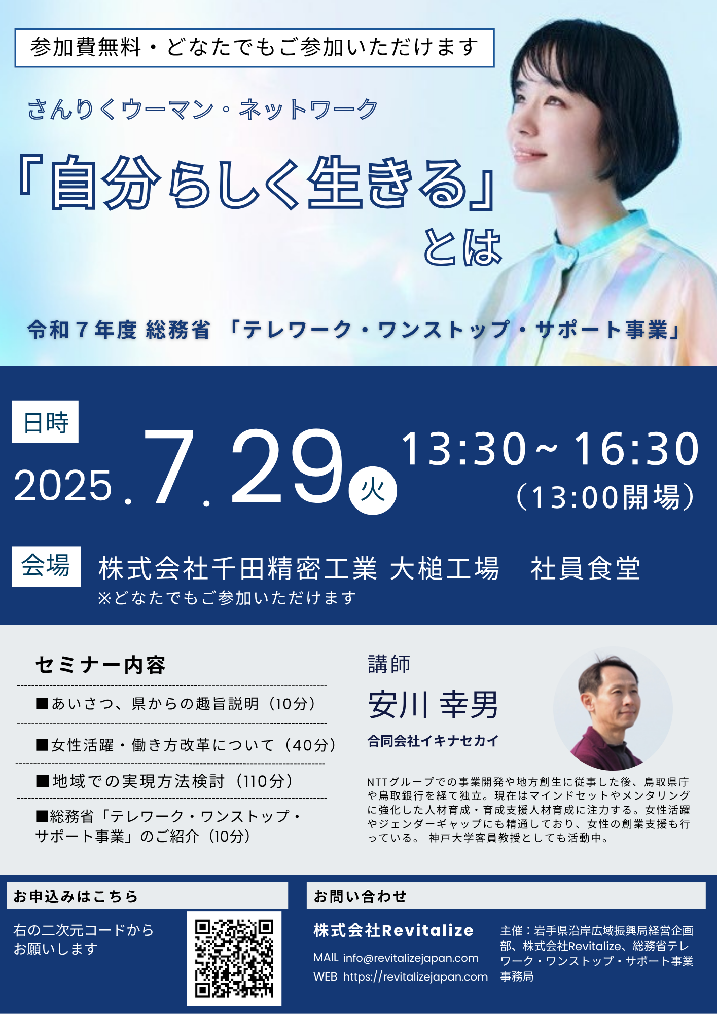 主催:岩手県沿岸広域振興局経営企画部、(株)Revitalize、総務省テレワーク・ワンストップサポート事業事務局